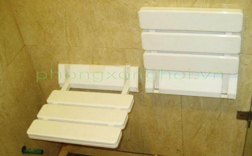 Treo tường , vật liệu nhựa  ABS khung nhôm sơn tĩnh điện, chuyên dùng để ngồi xông hơi ướt hoặc tắm. Ưu điểm gọn và xếp đc sau khi dùng. Chịu được 130kg trọng lực.